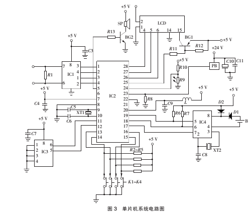 24 V 直流電源,單片機 IC2 對系統進行自檢。 若有異常,單片機
